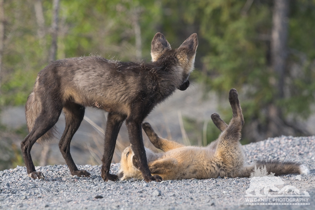 For the most part, the kits were busy playing a game of chase and wrestling while some put themselves in time out for a short nap. There were at least 3 adults that I saw taking care of this year’s young though I think some might have been better foragers than others. I saw one fox bring back a shopping bag, empty and covered in mud but getting closer!